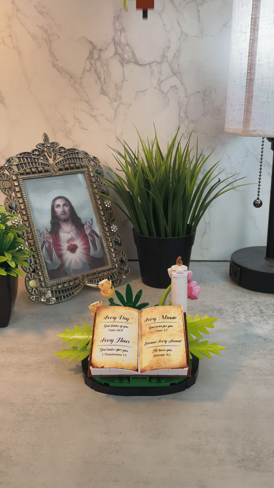 With vibrant flowers, a radiant cross, and an open Bible base, this set becomes a stunning centerpiece for any home, prayer room, or church office.